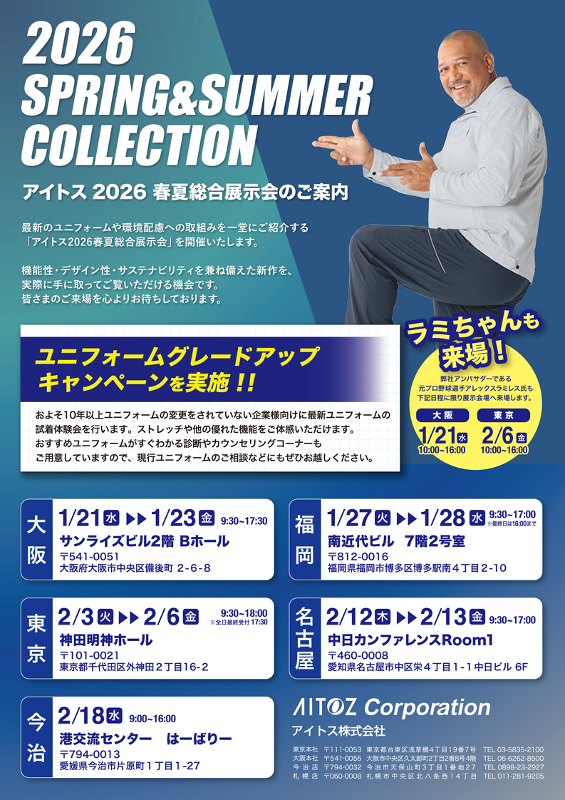 「アイトス2026春夏総合展示会」を記載の日程で開催いたします。