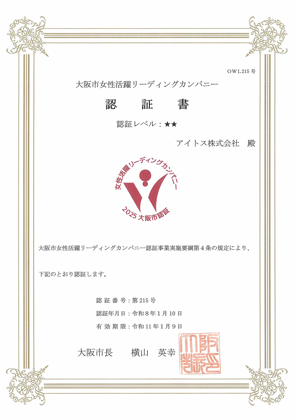 弊社は2つ星認証を受けました。