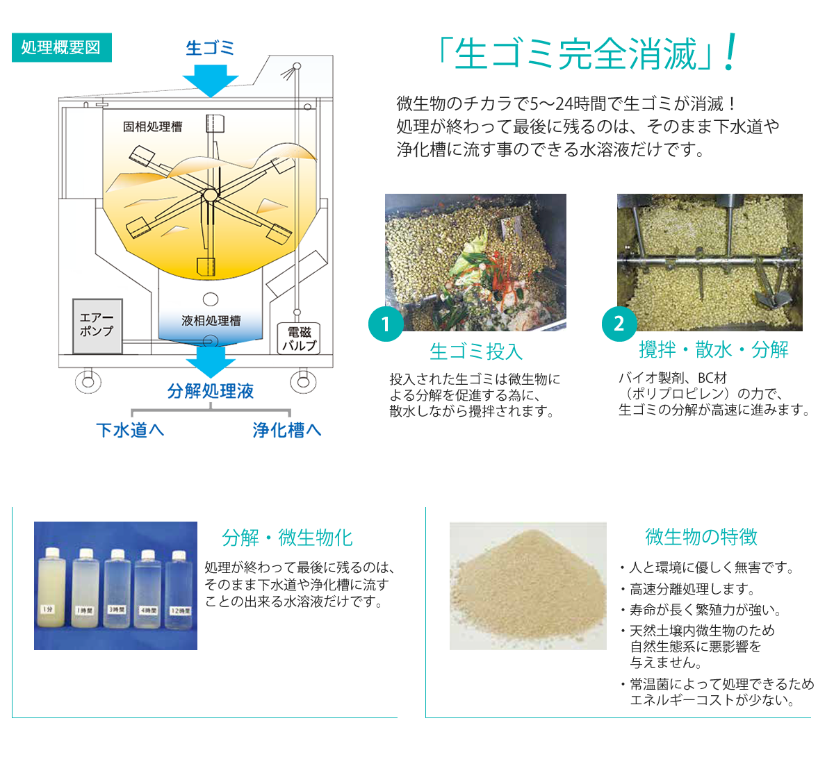 | 処理方式 | 好気性微生物分解 | ||
