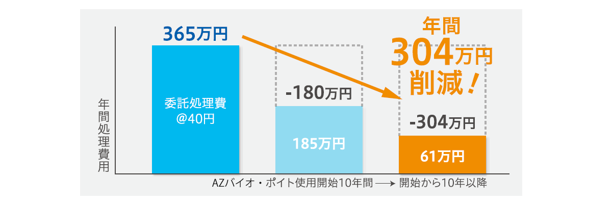 AZバイオ・ポイト本体償却費=年間124万円 ランニングコスト=年間61万円