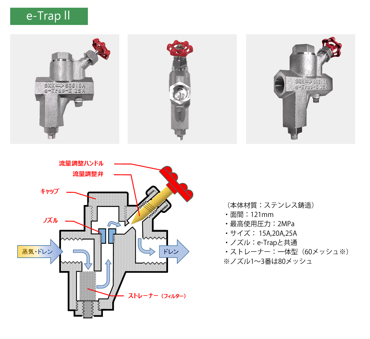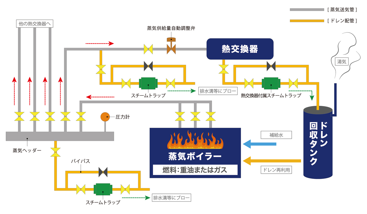 ドレンを溜めることなく速やかに排出することと、蒸気ロスの極小化が求められます。