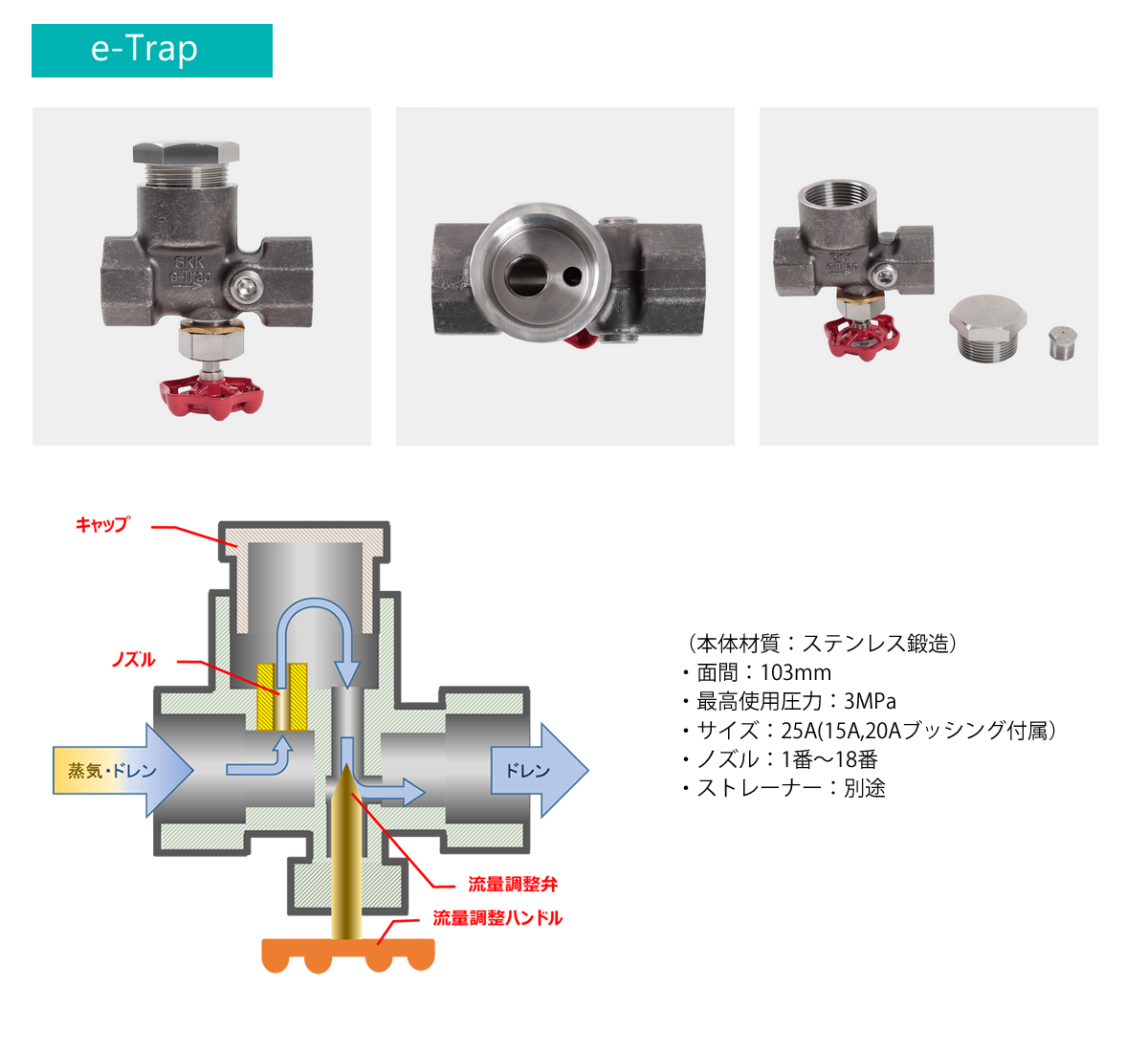 ドレン実流量に合わせることが出来るので、蒸気漏れを極小化できる
